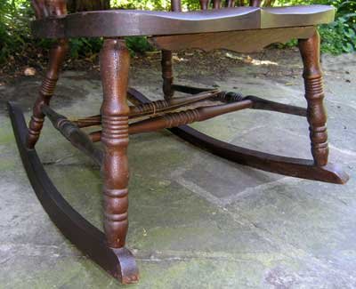 This is the way you hope to find Victorian chairs, blackened through time, and untouched by ruinous refinishers since. This chair came to auction in a remotely located, 1833 stone house, which still had its thick pine plank floor. This rocker is the same age as the one above but is slightly smaller in height and width. Still it's a comfortable seat and a fine example of memorabilia furniture in unrefinished condition.