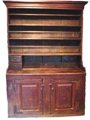 Early 19th century Pine Dish Dresser - original red paint, Norfolk Cty 85" h Final Price - $22,000 |