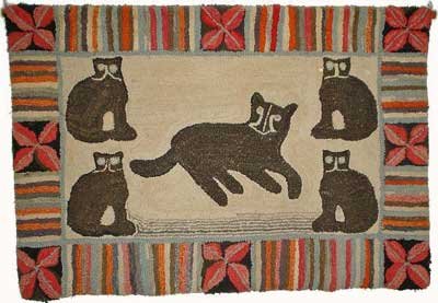 | 19th century Hooked Rug - Five Cats from Perth, Ontario, 60" w Final Price - $26,400 |