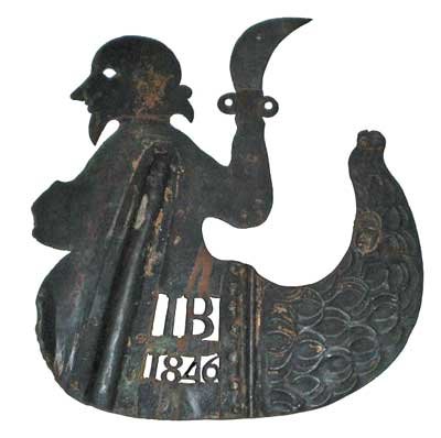 Can one legitimately ask? Would a poor homesteader take the time to cut a date into a weather vane in 1846, what with the wife yelling "John, John, the pigs rooted out the 'taters agin' and Susie's gone to the corn crib with the hired hand agin'.... John, John, will you quit foolin' with that damn tin thing agin' and do somethin' useful 'round 'ere... John... John... the chimney's jus' caught fire again!" Could it have been carved by well known and most prolific folk artist IM Bogus? |