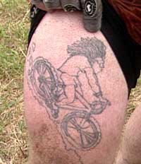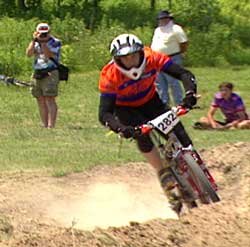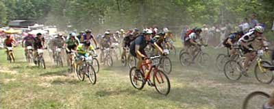 The thrill of cross-country biking attracts young and old (one enthusiastic woman is over 60) and even the disabled (one races with a prosthesis. (DVD Cover, right)