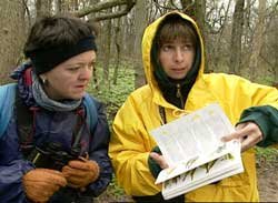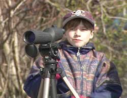 Birding appeals to people of all ages. (Above) A young birder is up at 6 a:m to see the first exhausted birds on the beach after flying during the night. A Yellow-breasted Chat rests on beach debris.