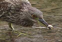 The boardwalk below offers an intimate look at marsh birds like the Black-crowned Night Heron eating a tasty morcel.