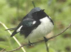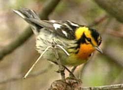 Birders might see a passing Tundra Swan (left) or a Scarlet Tanager (below). But the warblers, tiny birds flitting around the branches, are a special treat: (clockwise) the Blackburnian, the Black-throated Blue, or a rare sighting of a Blue-winged.