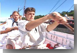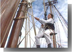 Visitors to Discovery Harbour at Penetanguishene, Ontario become crew members on the HMS Tecumseth or the Bee, two working replicas of tall ships that were part of Britain's Great Lakes defence fleet during the War of 1812. They actually become working sailors, and learn how to sail a tall ship.