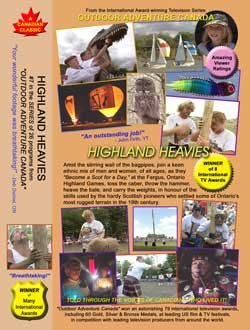 | Canada's Scottish heritage is explored through the keen participation by people of all ages in the traditional Highland Games, once the preserve of brawny Scottish men, but now enjoying the enthusiastic participation of women "heavies" and men of all ethnic backgrounds. (DVD Cover, left) |