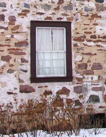 The walls, like one usually finds with field stone houses, are 76 to 92 cms thick, giving large window wells inside. The floors indoors are the original 2x6 inch white pine planks once walked on by Charles.
