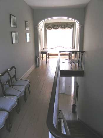 | Above, the classic centre hall and stairway that split the Georgian house in two, giving access to all the rooms of the house, left and right, off the centre hall.