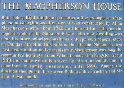 Below the ball room on the second floor situated to the right of the top of the stairs above. Sir John A Macdonald, Canada's first Prime Minister, and hailing from nearby Kingston, Ontario, often visited the house and this room. He was a bit of a playwright and often acted in plays staged in this room in front of local audiences. |