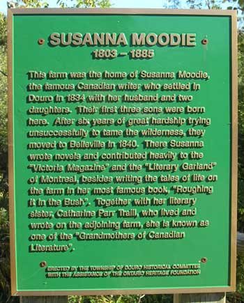 It had been the wilderness home of Susanna Moodie, who had written her two famous books, "Roughing it in the Bush" (1852) and "Life in the Clearings" (1853), from her experiences in setting up a homestead, in a clearing, on this tiny lake. Her sister, Catharine Parr Traill, who also homesteaded a mile further south, had written "The Backwoods of Canada" in 1836, and added further notoriety to the spot with her "A Canadian Settler's Guide" in 1855.
