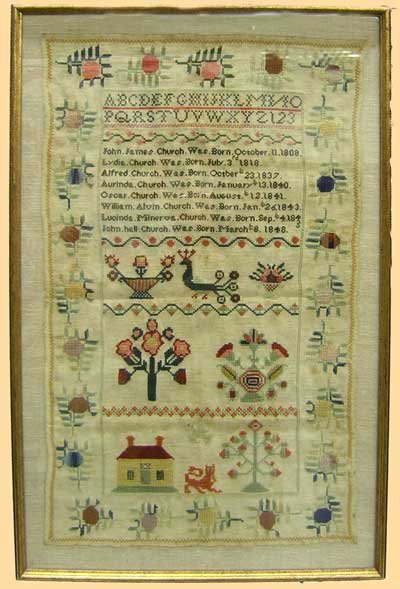 1840s Church Family Registry Sampler - dates of births 26" h Final Price - $15,400 |