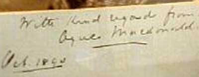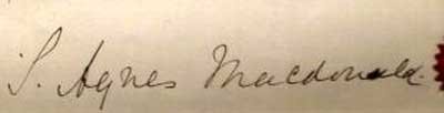Agnes was the loyal wife of John A Macdonald, first Prime Minister of Canada. She was less loyal to Canada; she returned to England when he died in 1891... Signatures on cabinet cards are common, but most have been written by dealers etc., trying to identify the anonymous photo. But we got lucky with this one, confirming that it was done by Agnes herself, by comparing it with other of her signatures: the first from 1870, where she used a different A, and another from 1894.