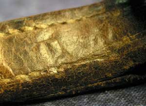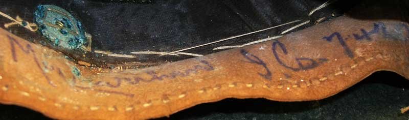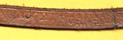 An item like this is valuable because, since it bears a soldier's signature below on the leather sweatband, and on the chin strap, we can confirm the materials, construction of the equipment and uniforms that were issued to the troops, and use it as a standard for rejecting bogus items that militaria dealers try to sell, deceptively, as "real Boer War items."
