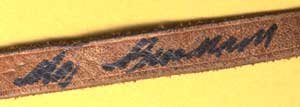 These glasses were sold by someone who could not exactly decipher the inked signature, couldn't reference the name, and never discovered the stamp on the leather (which is very faint and hard to make out unless one is looking with a loupe.)