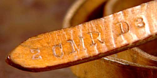 A most fabulous discovery is the signed bugle of Canadian Mounted Rifles Trooper Edwin McCormick. It is stamped and dated 1901. It is one of the rare bugles to be hand inscribed by the owner. The two Boer names, from South Africa, are remote areas that Edwin's regiment, the CMR, was campaigning in early March 1902. At the Brackspruit it fought a major battle. The combination of: the regimental history, Edwin's history, the stamping, dating, place this squarely as a Canadian bugle that might have been used in the war in 1901 or 1902.