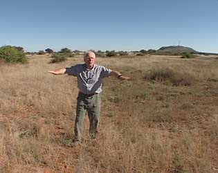 Right Within sight of Paardeberg Hill, Canadian historian John Goldi advances in the footsteps of the Canadians, on the very ground where Roland Taylor was killed on Feb. 18, 1900, as they charged the Boers lying in trenches behind us.