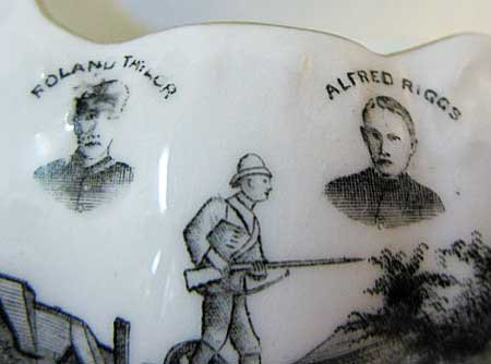 Boer War memorials were sometimes featured on souvenir ware but we have never seen any which also featured portraits of local war heroes.