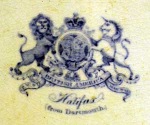 The view from the Dartmouth side out the Halifax harbour mouth. Below, the marks used on the backs of the PW & Co platters. |