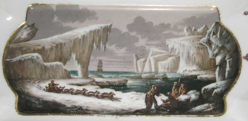 From the illustrations many British potters took images which they put on their dinner services surrounded by proprietary decorations, the whole then, usually, given a pattern name.