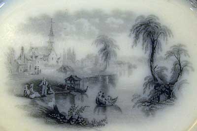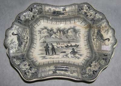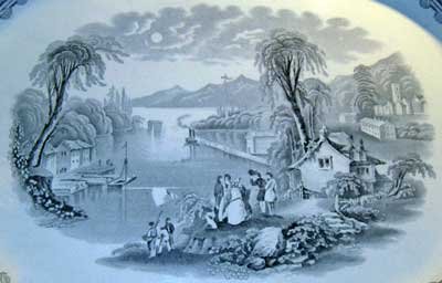 The books they wrote, the pictures they drew, were a gold mine for the British potters who made transfers such as those illustrated here. Though only platters are shown, entire dinner services once accompanied them, with the identical pictures put on pitchers, cups, bowls, serving dishes, plates, even vases and soup ladles.