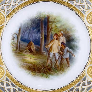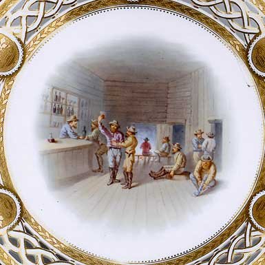 Soon his claim was surrounded by a gold rush of its own. In his sorrow he kept digging. His claim was famous throughout the west and got its own plate in the Minton service.