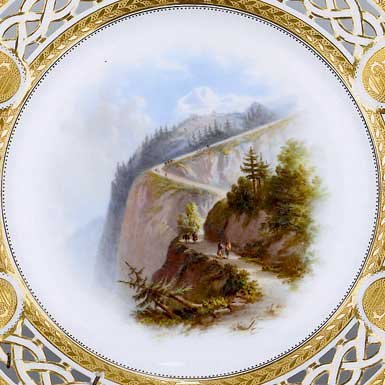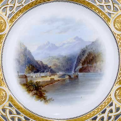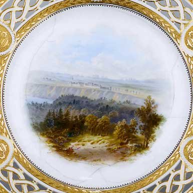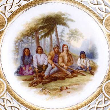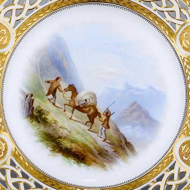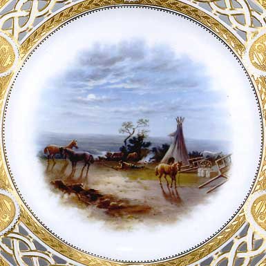These ultra-rare Canadian commemorative plates, featuring topographical views of Lord Milton's trek across the Canadian West, sold for 10,000 pounds (ten thousand pounds or $21,000 Canadian) per plate at Bonham's Auction, UK, in 2002. |