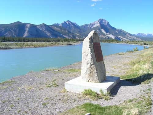 The site of Jasper House - where the party stopped to rest and visit with the fur traders who were there - as it looks today, showing the kind of mountains which the group started to encounter as it entered the Rocky Mountains.