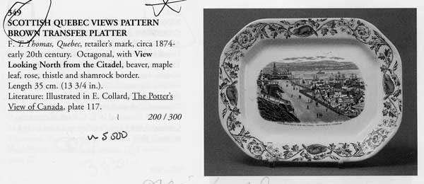 You could actually get an entire dinner set all bearing the picture of the Porte St.-Louis left. Today, sets like that are impossible to find; single plates are much easier to come by, and were probably bought as souvenir items by those visiting Quebec at the end of the Victorian era.