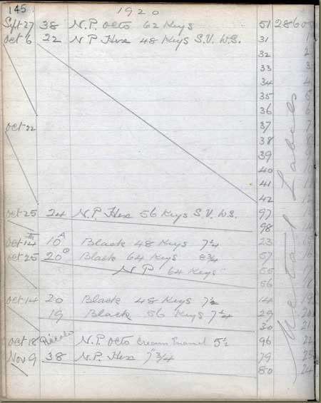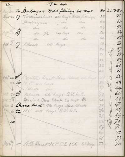 Wheatstone was so high on production quality that each instrument was logged into its production books. These have been preserved by the Horniman Museum, London, UK. Below the production log from 1920 to 1925 covering instruments with serial numbers from 25000 to 28749.