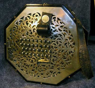 The Wheatstone Aeola - The finest instrument Wheatstone ever made - in homage to Aeolus, the God of Wind - was the top-of- the-line 64 button Aeola model, which first appeared in 1898. It dwarfs its cousins in size, power, and quality, and was considered so special that Wheatstone gave it billing status separate from its concertinas on the company patent and manufacturing label right.