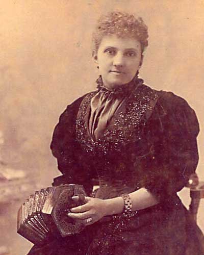 Eva Booth (1865-1950), was the daughter of General William Booth who founded the Salvation Army. Besides being a concertina player of note, she became Territorial Commander of the Army in Canada between 1896-1904.