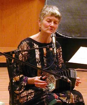 Far left the legendary Peggy Seeger, for thirty years the wife of the late Ewan MacColl, famous British folk song writer and performer, playing her Wheatstone Aeola.