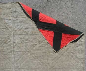 Besides being a fabulous heritage item - because of the history of the materials from which it was made - it is also a fine example of a "utility quilt" of which so few survive today, when all collectors zero in on the pristine "good, for show" quilts. After all it was the "utility quilts" that played the major role in keeping pioneer Canadians protected from the cold.