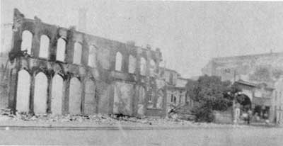 FIRE! The biggest fire in Guelph's history broke out in 1921 and destroyed the Wyndham street factory row. Above, the Stewart factory facade is all that remains standing next to the grove of trees around The Lilacs, in the right background, and in the close-up right. Sadly, the mansion was consumed by the fire. Fortunately - one can't help but feel - Robert had died three years earlier, and did not see what became of the dream he had built in Canada for himself, and the Stewart family. It would have broken the heart of the old man.