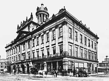 Below is the new factory he built in 1869. Robert lived right beside it, in a home he called "The Lilacs," so he could keep an eye on things. The trees on the right are beside The Lilacs, which is shown below right, tight up against the expanded factory in the 1890s. But, adding three extra bays to the factory, above, towards the house, was not a good idea...