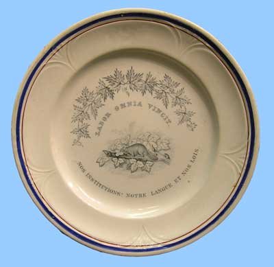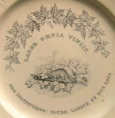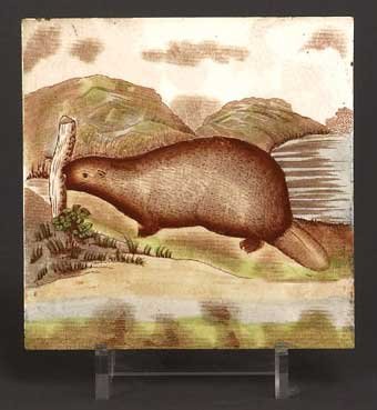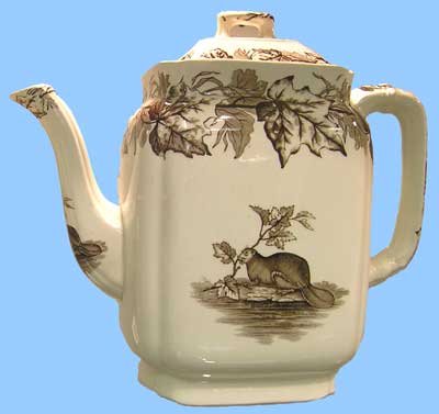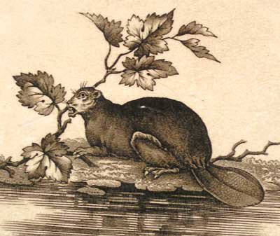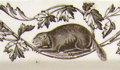 The Walley service features an unappealing rodent squatting bloatedly on a maple tree branch, which, of course, never happened. Somebody forgot to tell the artists in England that beavers were not tree climbers like bears, or squirrels.