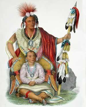 Single, hand-coloured lithographs, like those shown here, disbound from these original volumes, sell for hundreds of dollars (US) each, at auctions, even for the small octavo sizes. In stores they are many times that. Some, like Keokuk and his son, below right, one of Bird's most spectacular works, is currently offered for sale as a hand-coloured lithograph - not, it must be emphasized, as the original painted by King - for $5,500 US.