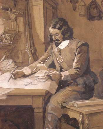 What a romantic vision of the founding of Canada, below the Heights of Quebec, with Champlain, accompanied by a faithful companion, a priest, loyal Indian paddlers, and dogs, looking towards... you guessed it, the 400th anniversary of this moment, in 2008, the founding of Quebec - indeed of Canada. And what kind of Canadian hero is this? No body armour, no machine guns, or tanks, for decimating the local population... What! And turning his back on the locals? What American commander or CNN correspondent, would dare do that in downtown Baghdad; what Canadian in camos, in southern Afghanistan? What a novel concept for a hero! We'd better celebrate this big time next year. Maybe we're on to something here! We shall not see his kind again, any time soon. The alarming trend seems to be to fashion Canadian heroes in the mold of the gunman from Texas... spreading terror all over the world. Sorry, we meant to say freedom and democracy... But the trend will be good for Canada's movie industry; writers are already hard at work writing raping and pillaging scripts of Canadians in Afghanistan; and lawyers are already figuring out how the Canadian taxpayer will be tapped to pay for these Rambo run amok movies... Sorry, we meant to say Great Canadian Heritage minutes...