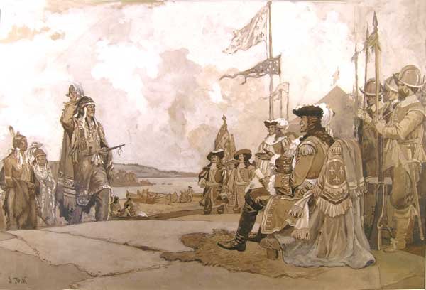Champlain Arrives at Quebec, 1608 - JD Kelly, 1895 |