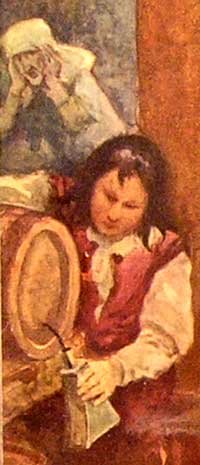 On October 22, 1692, Madeleine de Verchères was 14 years old and working , with a group, in the fields outside the fort, near Montreal, when the Iroquois attacked. She alone survived, to run back to the fort, shouting - not, as some books would have you believe "To Arms! To Arms!" but actually, "Aux armes! Aux armes!" Inside were only two frightened soldiers, an old man, crying children and screaming women - they had just watched their husbands and sons being killed! In spite of the overwhelming sense of fear, rising panic, and utter hopelessness that reigned, Madeleine organized the defence of the fort, with her 12 year old brother, getting everyone to shoot guns, and a cannon, to keep the Indians at bay. At night she posted sentries who called out constantly that all was well. The ruse of a large garrison worked well for eight days - the Indians feared to make an all out attack. Then a relieving force from Montreal rescued them. |