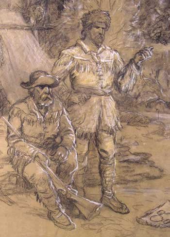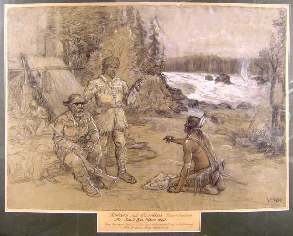 JD's passion for French-Canadian history is evident in all his paintings, even though the nuances of the language escaped him, with three mistakes in three words! At least "Varshair" was a creative phonetic approximation! |