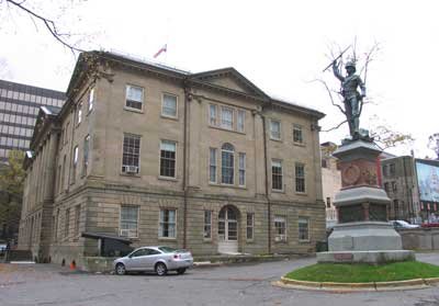 Beside the statue is Province House, the Parliament of Nova Scotia, and the oldest legislature in Canada, built from 1811-1819, out of Nova Scotia red sandstone.