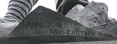 Hamilton signed off on the panel bottom right and on the main statue as well. Canadians passing by should pause, and pay homage, not only to civilian volunteers of a by-gone age, but to one of Canada's most creative artists of all time.