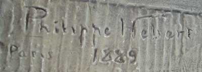 Most of the statues are signed and dated by the hand of Philippe Hébert on the base block. Philippe would have signed the mother mould from which the statues were cast. In his biographical entries he is always listed as Louis-Philippe Hébert but on all his sculptures he signs his name as Philippe Hébert. All these statues are originals from the 1880s, not repros from a later date, so Philippe would have personally supervised the production run of these commemorative sculptures. All the statues are some 75 cm high. Most weigh some 7.3 kg, but for some unknown reason, the bronze painted Macdonald weighs double that, at 16.4 kg. |