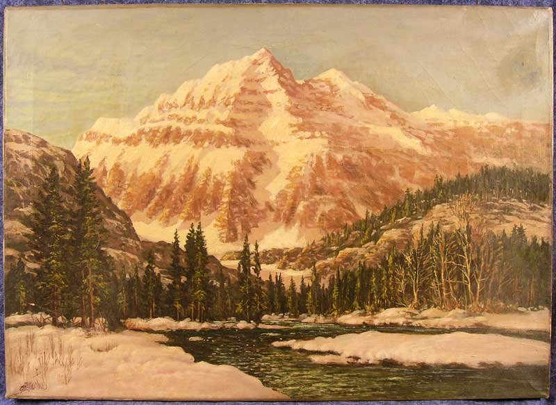 | Another amazing mountain scenic. Otto's art seemed to rise to new levels when he viewed and painted Canada's spectacular Rocky Mountains. |