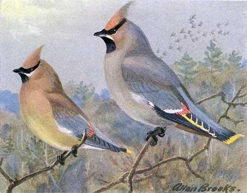 Cedar and Bohemian Waxwings