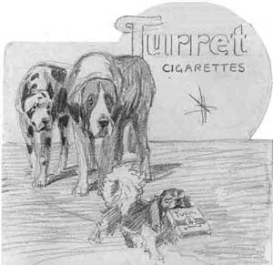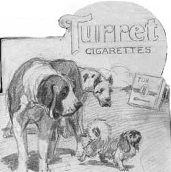 Doggone Good: Above, a sketch for a commercial client that a family member retrieved, and saved for posterity, from Art's waste paper basket. Art has so wonderfully captured the personalities, and the interplay, of the dogs that it is hard not to smile every time one looks at it.