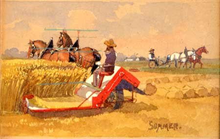 The final one features the binder cutting the wheat, tying (binding) it into bundles and dropping them on the field in late Summer.