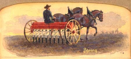 The top image features the seed drill, for planting, the chief preoccupation of farmers in the Spring.
