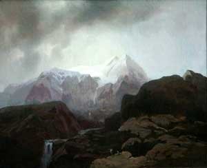 He developed a passion for capturing atmosphere in his paintings, so effectively shown in the Homestead (top) and the Rocky Mountains (above).
